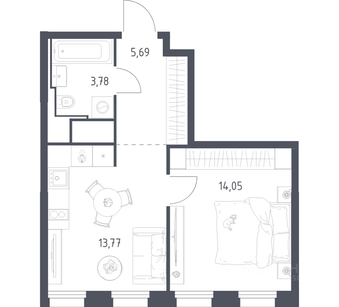 Строим кварталы для жизни с заботой о будущем. Предлагается 1-комнатная квартира бизнес-класса площадью 37,29 кв.м в корпусе 5 на 15-м этаже, в жилом комплексе "Квартал на воде".