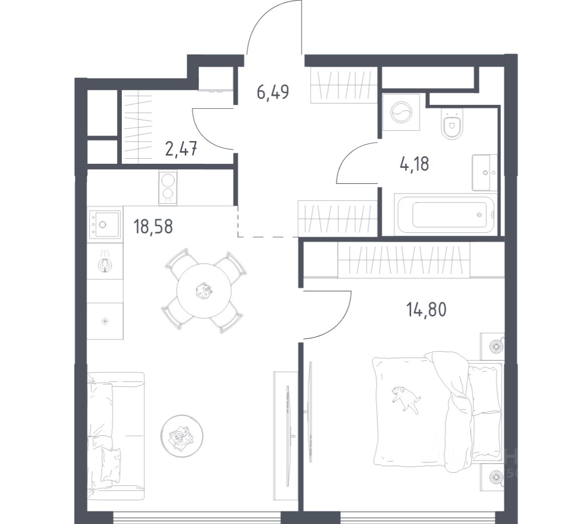 Строим кварталы для жизни с заботой о будущем. Предлагается 1-комнатная квартира бизнес-класса площадью 46,52 кв.м в корпусе 5 на 20-м этаже, в жилом комплексе "Квартал на воде".