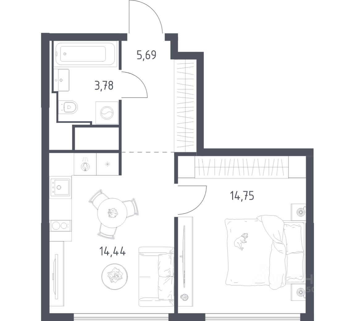 Строим кварталы для жизни с заботой о будущем. Предлагается 1-комнатная квартира бизнес-класса площадью 38,66 кв.м в корпусе 5 на 22-м этаже, в жилом комплексе "Квартал на воде".