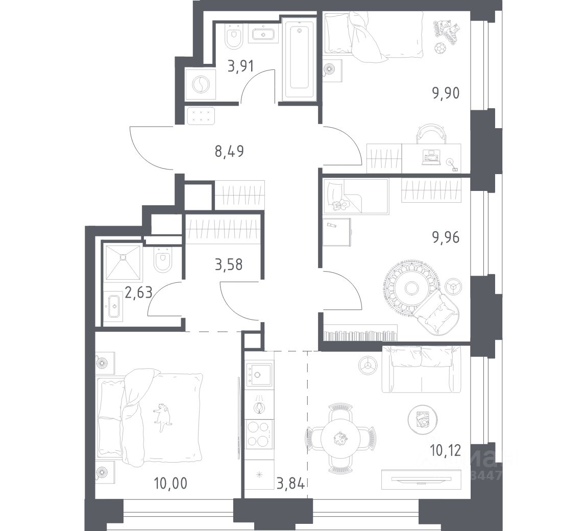 Строим кварталы для жизни с заботой о будущем. Предлагаются 3-комнатные апартаменты бизнес-класса площадью 62,43 кв.м в корпусе 1 на 6-м этаже, в жилом комплексе "Верейская 41".