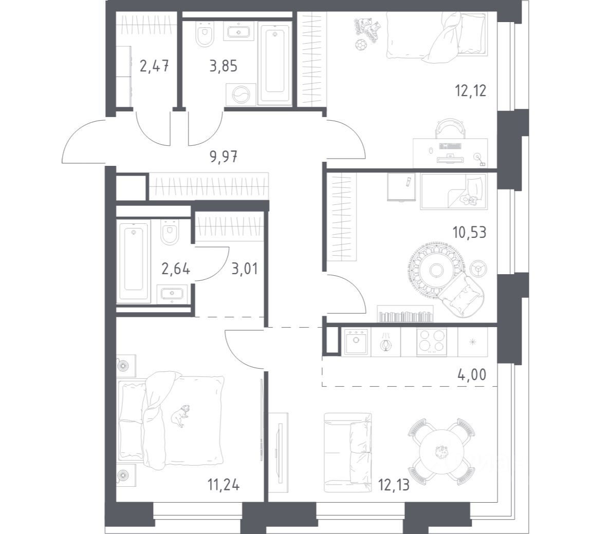 Строим кварталы для жизни с заботой о будущем. Предлагаются 3-комнатные апартаменты бизнес-класса площадью 71,96 кв.м в корпусе 1 на 11-м этаже, в жилом комплексе "Верейская 41".