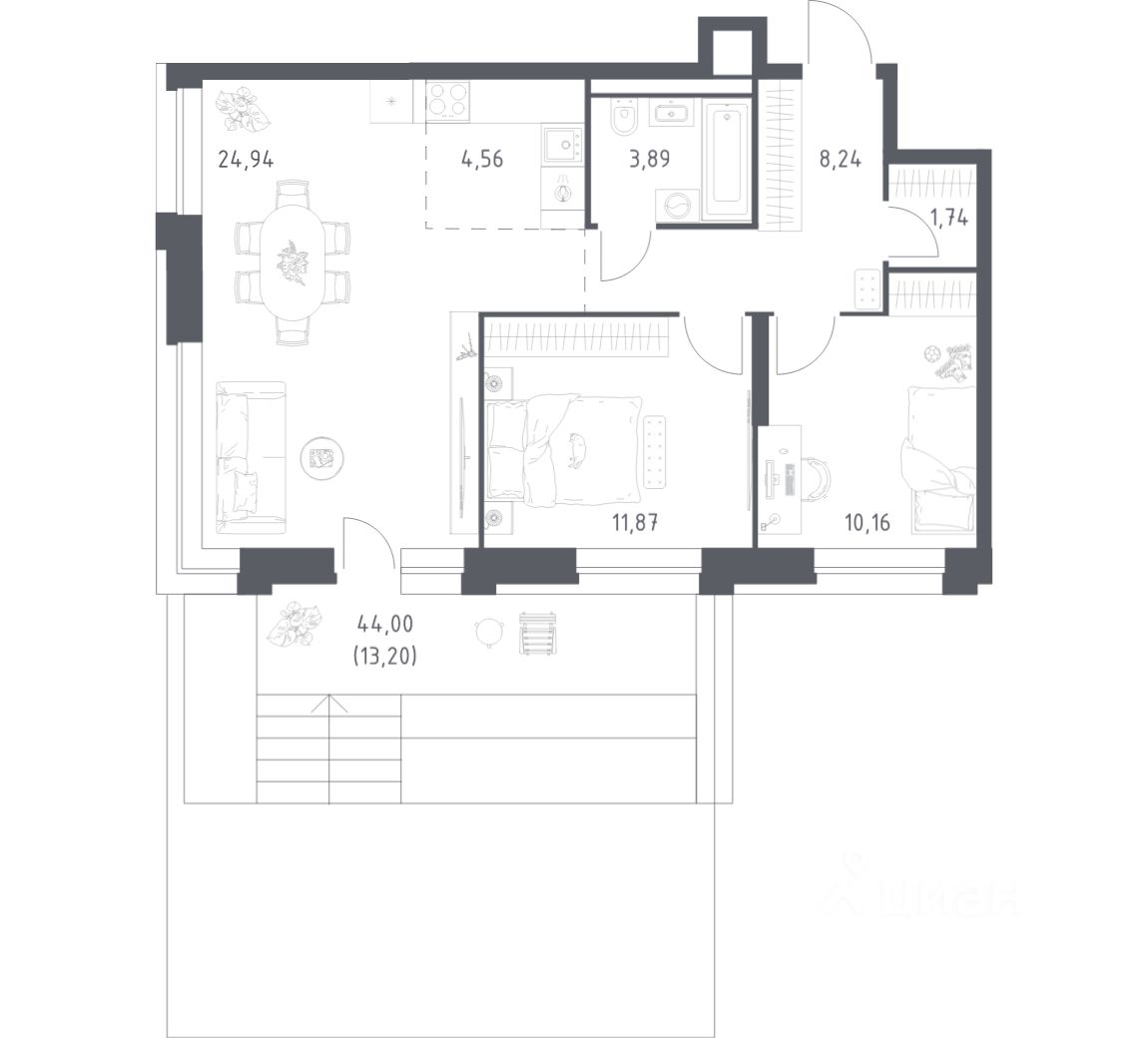 Строим кварталы для жизни с заботой о будущем. Предлагаются 2-комнатные апартаменты бизнес-класса площадью 78,6 кв.м в корпусе 1 на 8-м этаже, в жилом комплексе "Верейская 41".