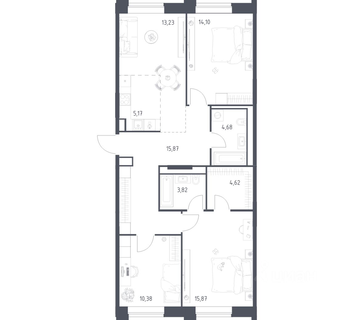 Вы можете сразу заказать мебель, технику, декор и текстиль. Уникальный интерьер подчеркнет ваш вкус. Для тех, кто хочет самостоятельно обустроить пространство с нуля, возможна сдача помещения без отделки.