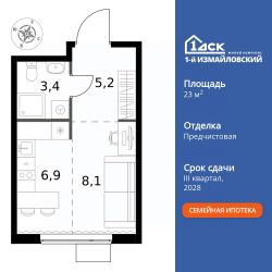 Продаётся квартира-студия номер 1004 общей площадью 23.6 кв.м. на 13-м этаже 25 этажного здания. Предчистовая отделка. Цена с учётом скидки.