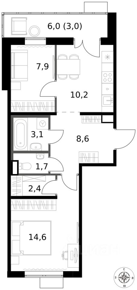 - Раздельный санузел - больше удобства для всех членов семьи.