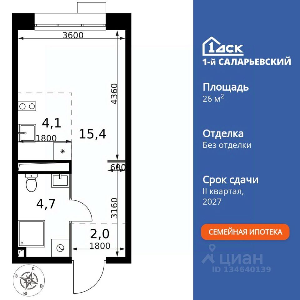 Продаётся квартира-студия номер 177 общей площадью 26.2 кв.м. на 19-м этаже 21 этажного здания. Без отделки. Цена с учётом скидки.