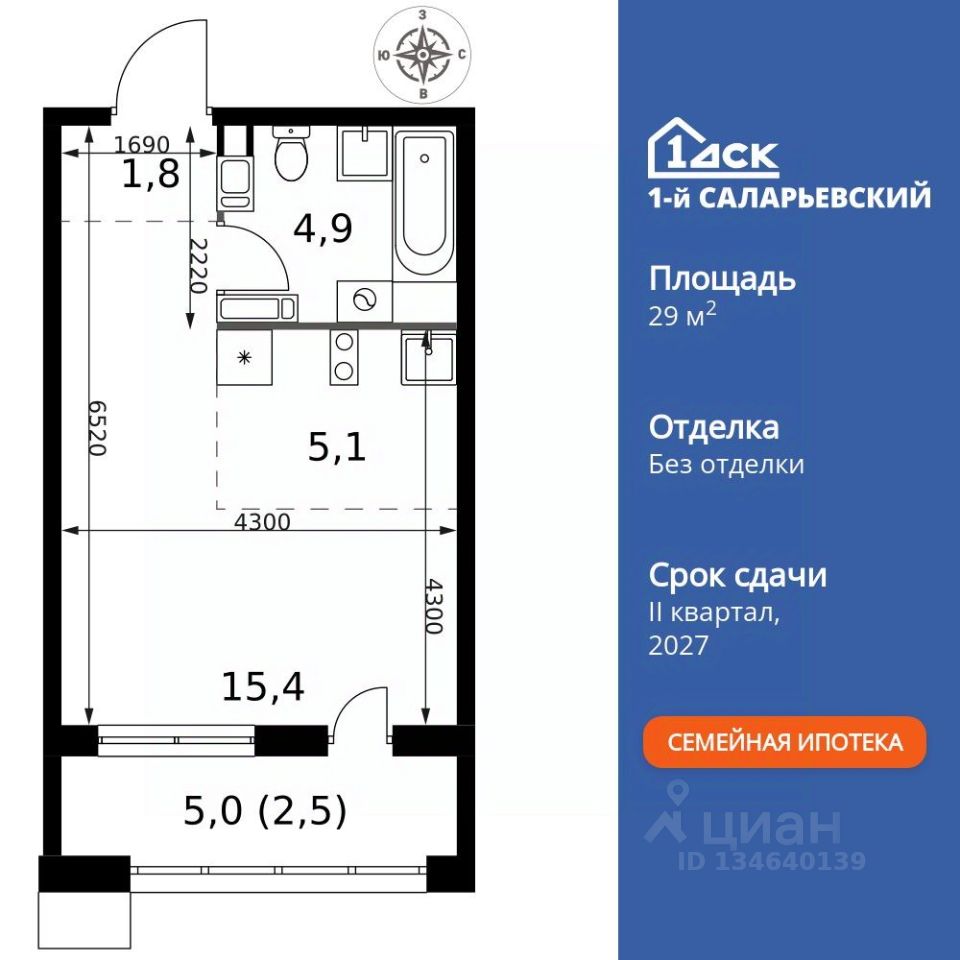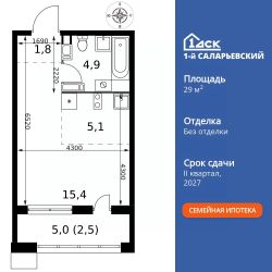 Продаётся квартира-студия номер 14 общей площадью 29.7 кв.м. на 3-м этаже 25 этажного здания. Без отделки. Цена с учётом скидки.