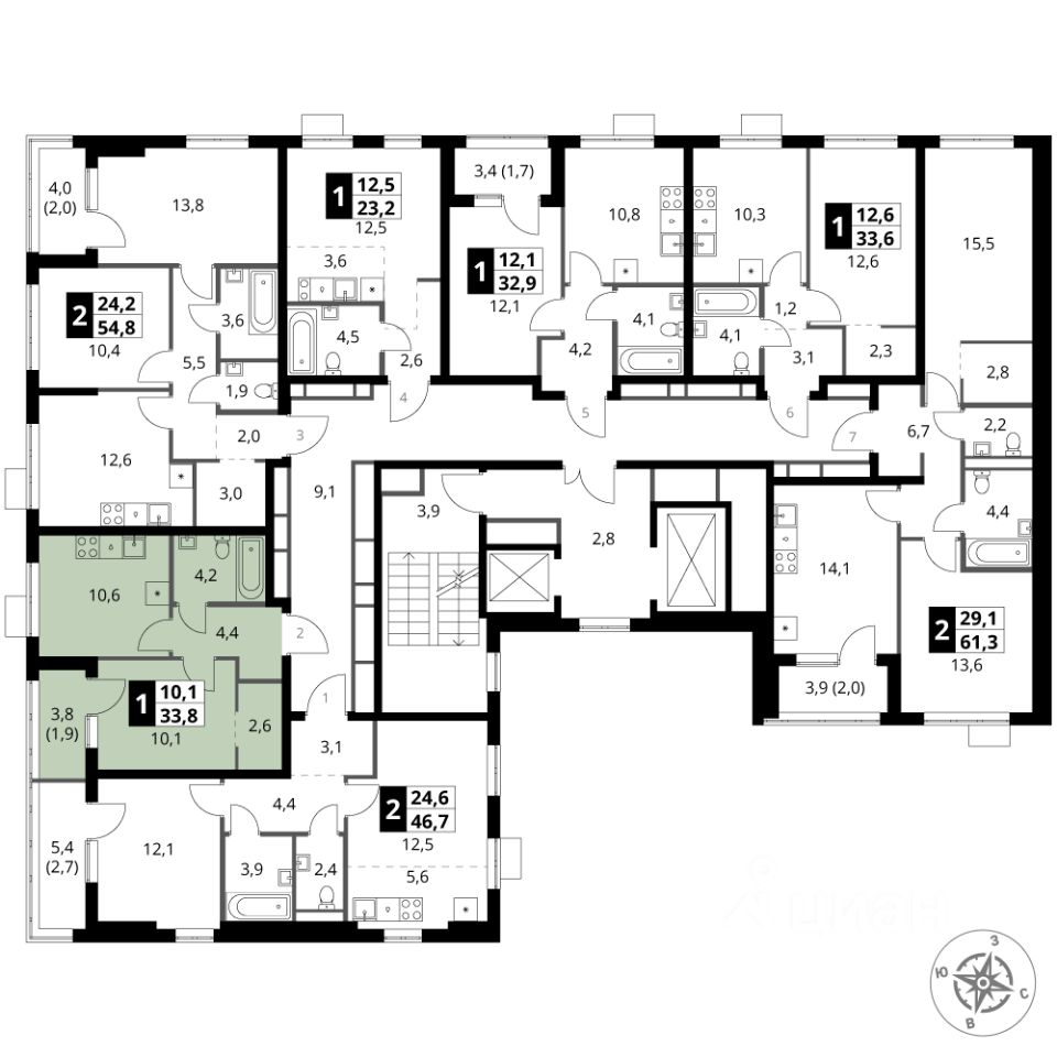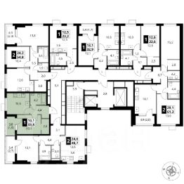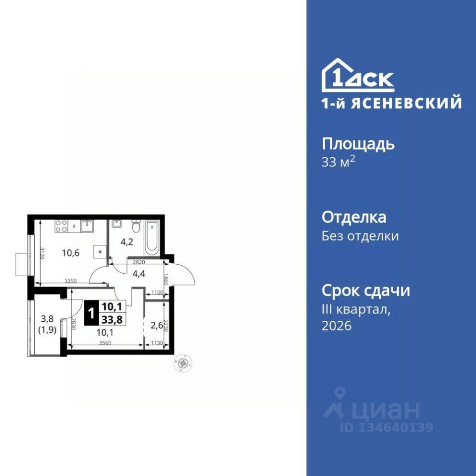 Продаётся 1-к квартира номер 86 общей площадью 33.8 кв.м. на 14-м этаже 16 этажного здания. Без отделки.