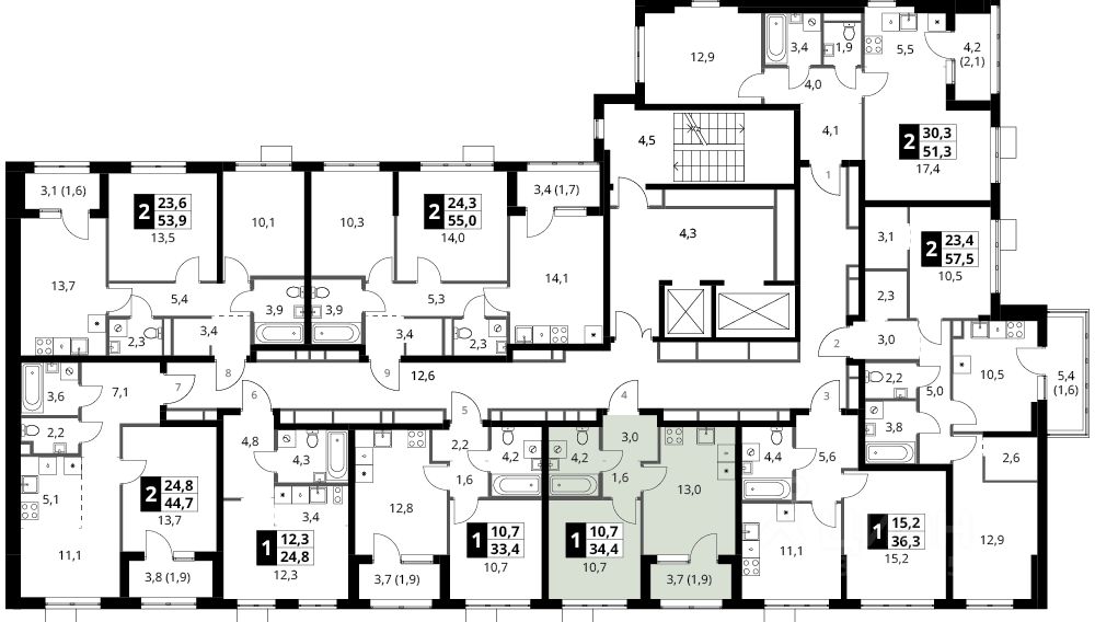 Продаётся 1-к квартира номер 669 общей площадью 34.4 кв.м. на 11-м этаже 18 этажного здания. Без отделки.