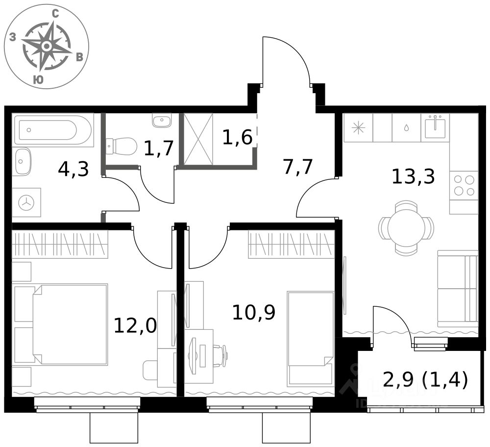 - Раздельный санузел - больше удобства для всех членов семьи.