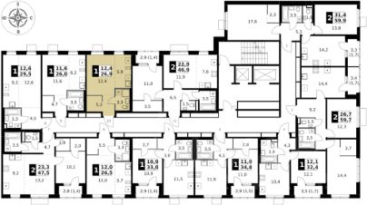 Продаётся квартира-студия номер 603 общей площадью 26.9 кв.м. на 18-м этаже 18 этажного здания. Предчистовая отделка.