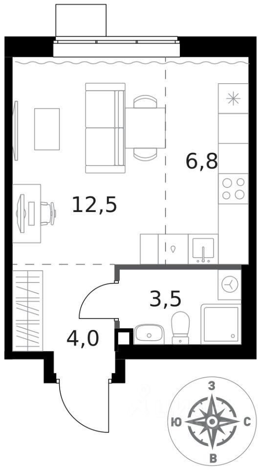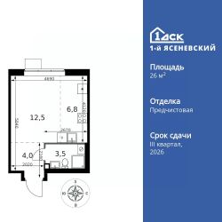 Продаётся квартира-студия номер 137 общей площадью 26.8 кв.м. на 15-м этаже 16 этажного здания. Предчистовая отделка.
