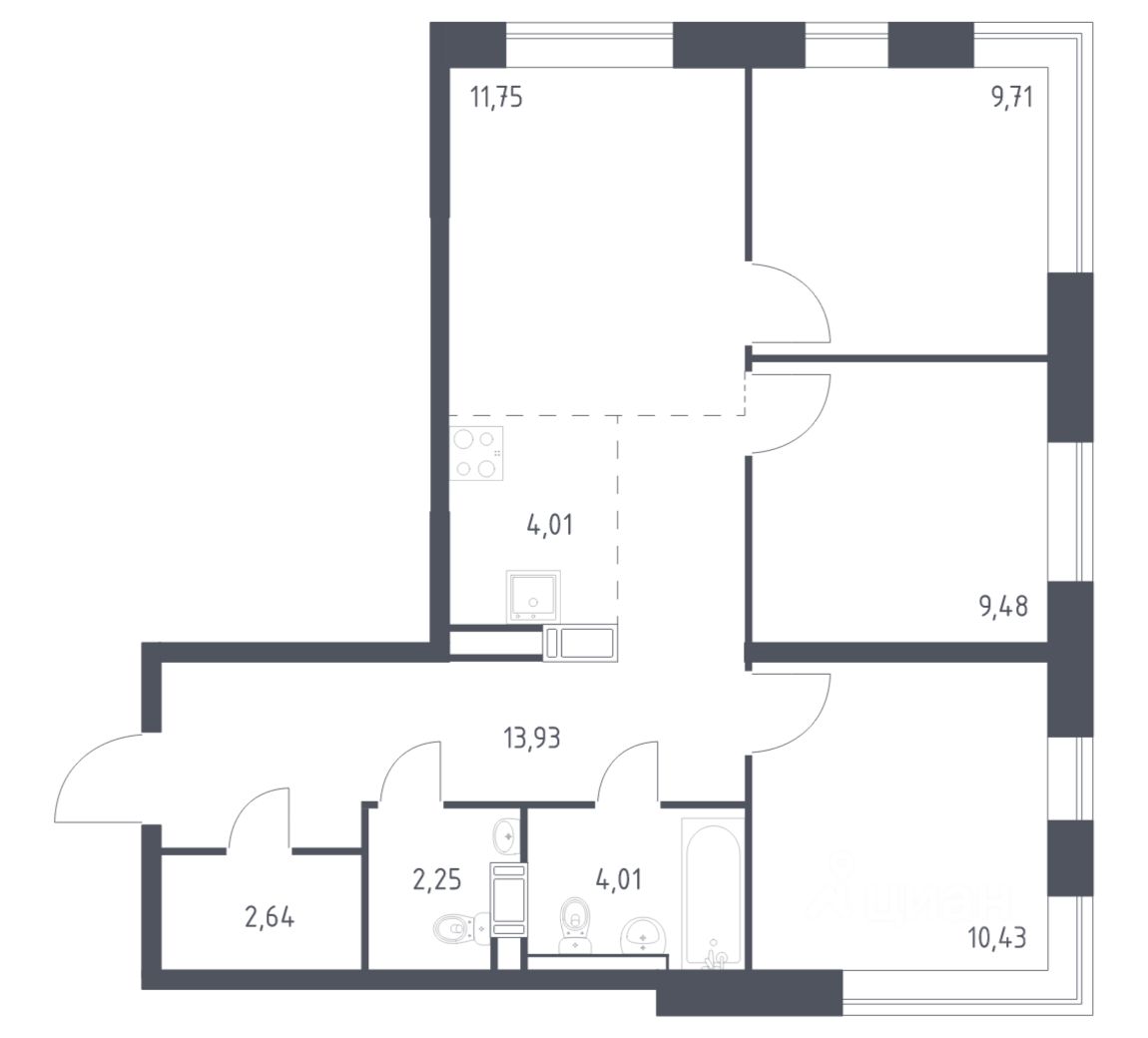 Строим кварталы для жизни с заботой о будущем. Предлагается 3-комнатная квартира комфорт-класса площадью 68,21 кв.м в корпусе 11 на 9-м этаже, в жилом комплексе "Цветочные Поляны".