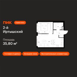 Продаётся 1-комн. квартира площадью 35,8 кв.м на 9 этаже 9 этажного дома (Корпус 1.6, Секция 6) проекта ПИК 2-й Иртышский. Светлый просторный подъезд на уровне земли, функциональная планировка, большие окна, c отделкой.