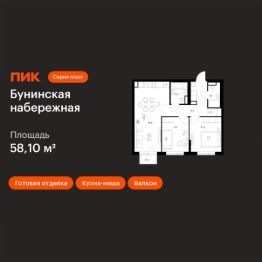 Продаётся 2-комн. квартира площадью 58,1 кв.м на 3 этаже 16 этажного дома (Корпус 2.6/1.4, Секция 4) проекта ПИК Бунинская набережная. Светлый просторный подъезд на уровне земли, функциональная планировка, большие окна, c отделкой.