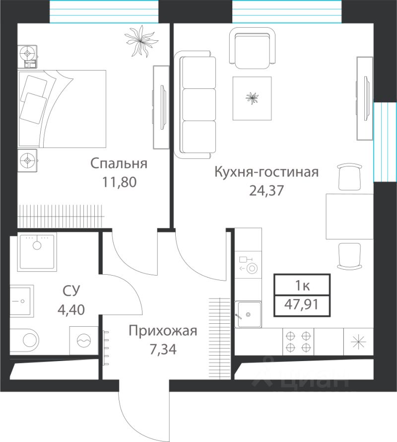 Продаются 1-комнатные апартаменты в строящемся доме (Корпус 1), срок сдачи: IV-кв. 2027, общей площадью 47.91 кв.м., на 13 этаже. Многофункциональный комплекс от застройщика "Название застройщика" расположен по адресу: Россия, Москва, улица Академика Ильюшина
