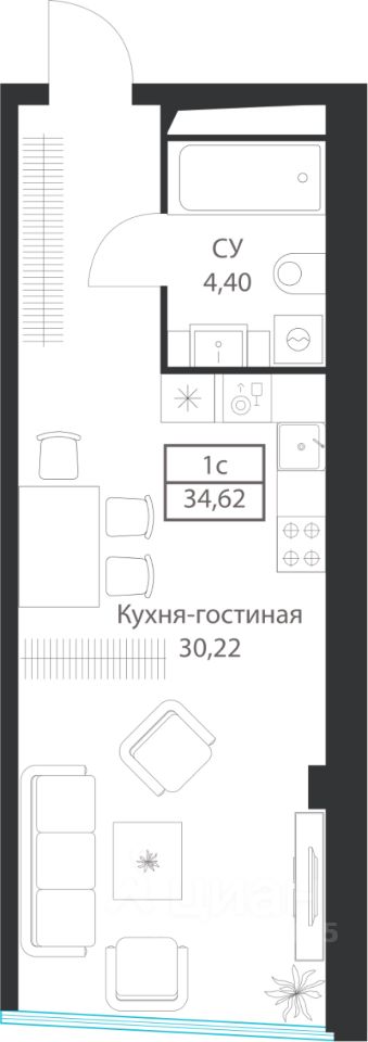 Продаётся студия-апартаменты в строящемся доме (Корпус 1), срок сдачи: IV-кв. 2027, общей площадью 34.62 кв.м., на 4 этаже. Многофункциональный комплекс от застройщика "Название застройщика" расположен по адресу: Россия, Москва, улица Академика Ильюшина