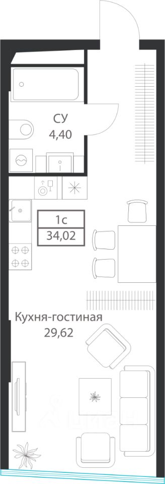 Продаётся студия-апартаменты в строящемся доме (Корпус 1), срок сдачи: IV-кв. 2027, общей площадью 34.02 кв.м., на 4 этаже. Многофункциональный комплекс от застройщика "Название застройщика" расположен по адресу: Россия, Москва, улица Академика Ильюшина