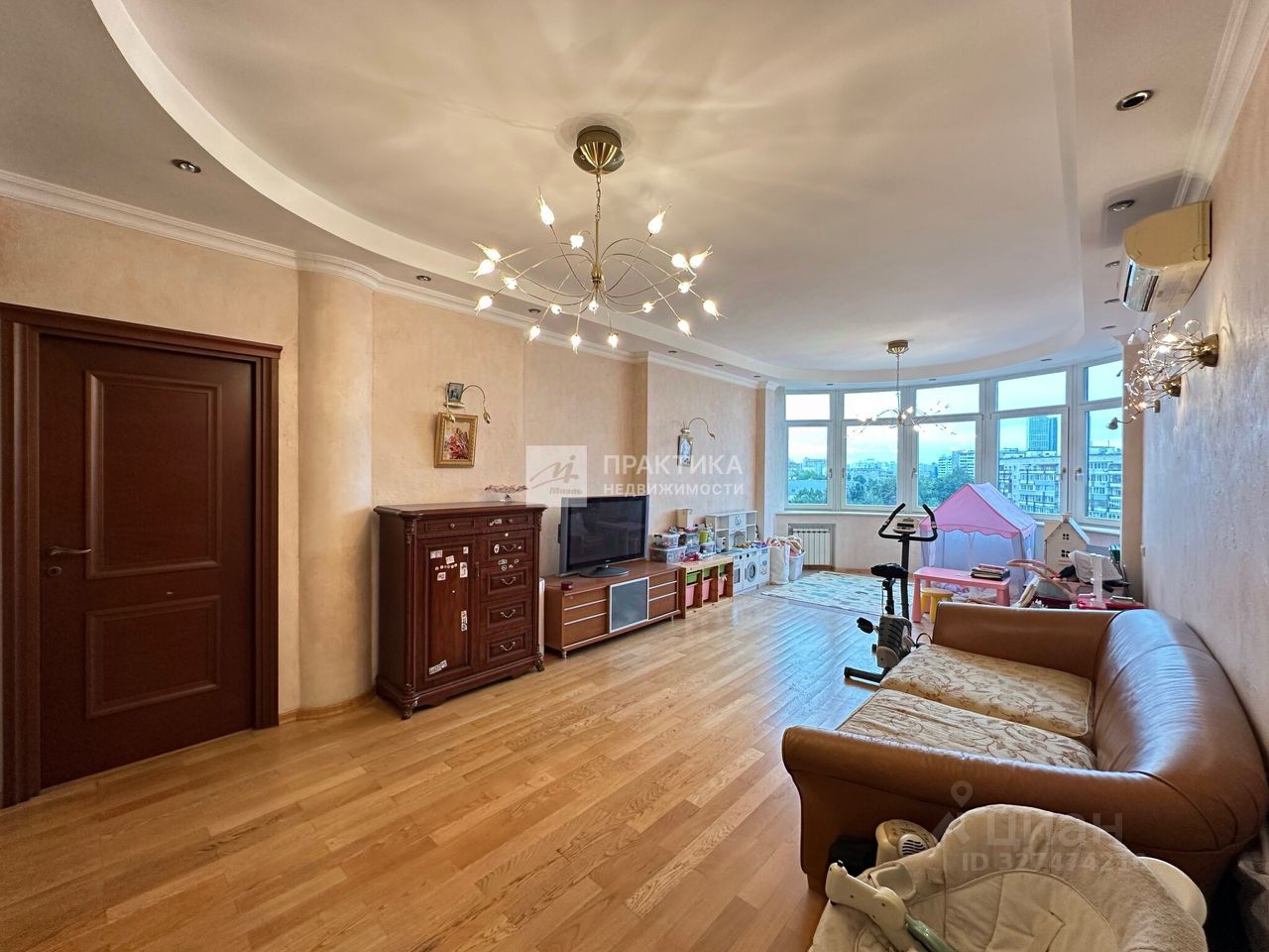 Отличное состояние и удобная планировка для семьи: большая гостиная, кухня, две больших спальни, одна из который мастер-спальня, два совмещенных санузла, застекленный балкон, что составляет 100 кв.м.