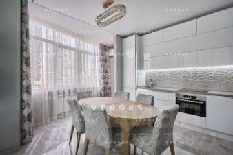 Квартира выполнена в новом ремонте с использованием высококачественных материалов и техники. Просторные комнаты наполнены светом панорамных окон. Каждая спальня имеет собственный санузел, что добавляет удобства и приватности.