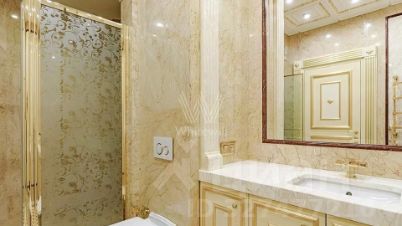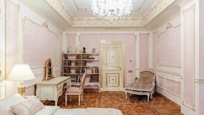 Просторная квартира с 3 спальнями общей площадью 240 м² в клубном доме делюкс-класса "Парк Палас". Квартира с дизайнерской отделкой в дворцовом стиле расположена на 5 этаже. Многоуровневые потолки украшены лепниной и карнизами с позолотой, стены декорированы молдингами, на полу выложен модульный паркет и мрамор. Квартира укомплектована мебелью и бытовой техникой от Gaggenau, Provasi, Turri, Bruno Zampa и OAK.