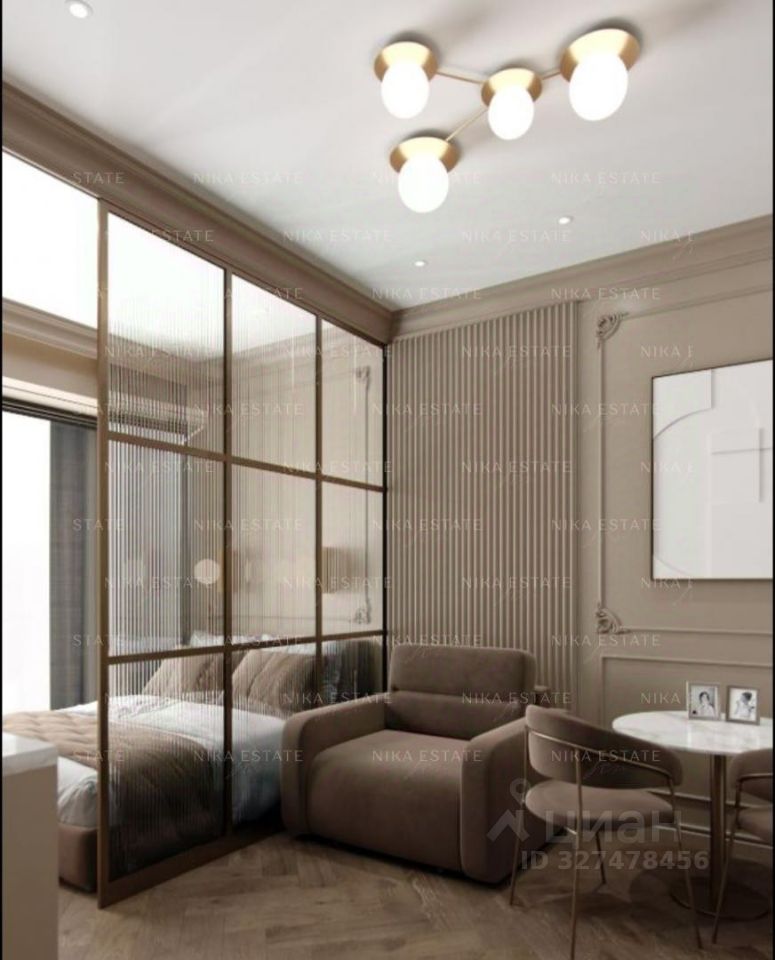 У квартиры хорошо продуманная планировка: большая кухня- гостиная с альковом для уютной спальни с вместительной гардеробной, просторный совмещенный санузел, удобная входная зона - холл.