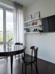 Уютная детская комната, при необходимости может стать кабинетом/второй спальней.. Компактная кухня-гостиная. Встраиваемая бытовая техника остается новому собственнику.