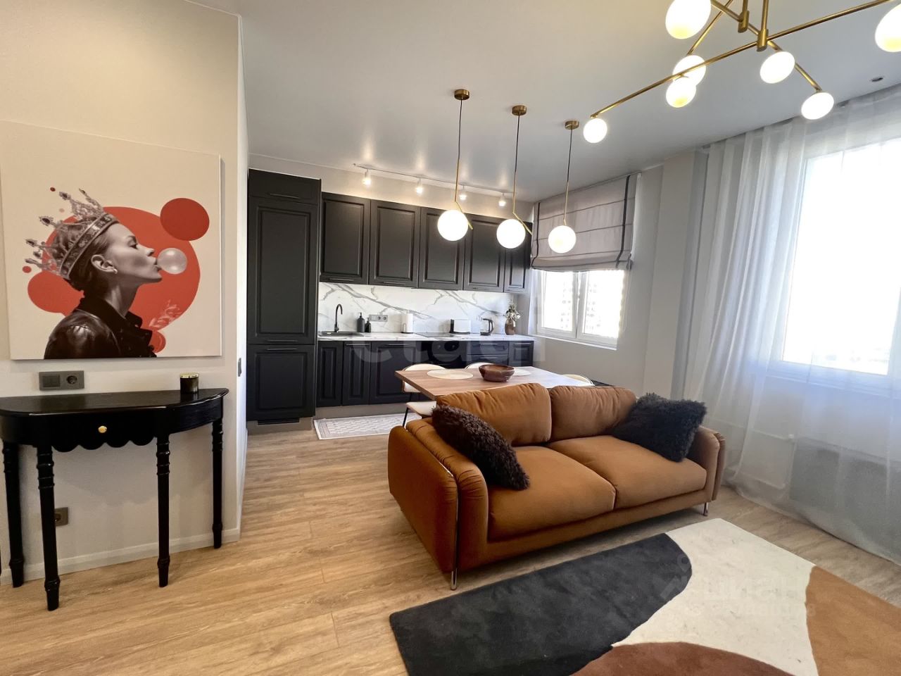Современный дизайнерский ремонт и качественная отделка. Домашняя техника Hoff: холодильник, плита, духовка, посудомойка. Французский текстиль La Redoute для уюта и изысканности. Просторная гостиная с огромным ТВ и быстрым интернетом. Санузел с тёплым полом, защитой от протечек и стиральной машиной Weissgauff. Два кондиционера и большая гардеробная — для вашего комфорта и порядка.