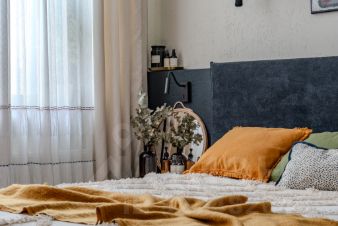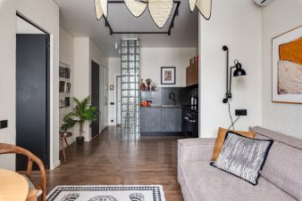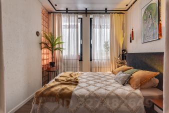В апартаментах выполнен дизайнерский ремонт в Балийском стиле. В ремонте использовались качественные материалы, эффектные решения с колоннами из стеклоблоков и разными сценариями освещения создают красивую игру света.