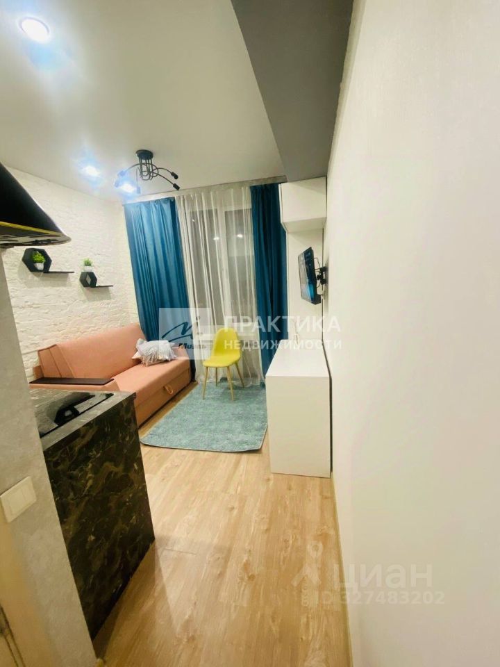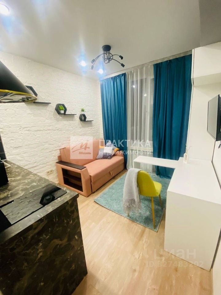 Студия расположена на втором этаже пятиэтажного кирпичного дома с железобетонными перекрытиями, сделан евроремонт, что обеспечивает современный и уютный вид помещения.