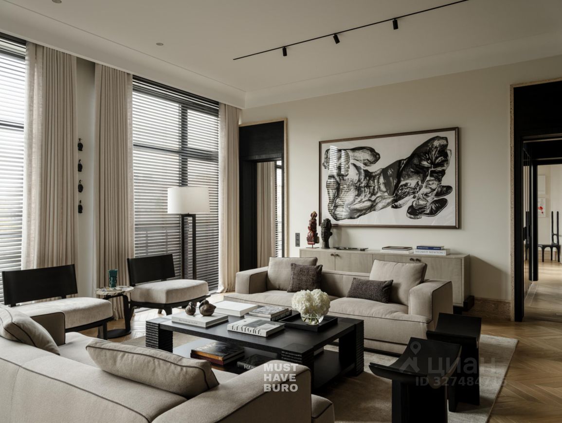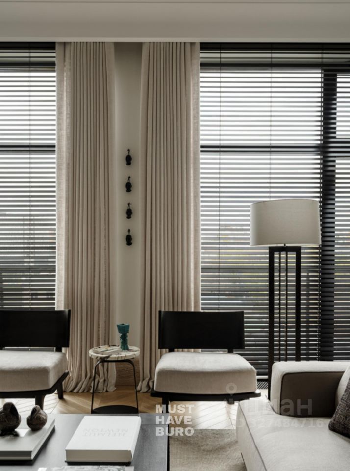 Резиденция занимает 6 и 7 этажи. Потолки 3,3 метра наполняют пространство воздухом и свободой. Интерьер полностью завершён и продуман до деталей: пентхаус предлагается с мебелью, декором и коллекцией искусства, органично вписанной в концепцию — вы входите в готовую историю, где всё уже создано для жизни.