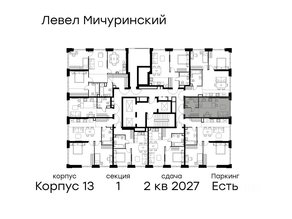 В жилом квартале, расположенном на границе с природным заказником "Долина реки Очаковки", продаётся студия площадью 28.30 кв.м без отделки. Квартира расположена на 2 этаже 31-этажного корпуса 13 в жилом комплексе бизнес-класса Левел Мичуринский (компания Level Group/Левел групп).