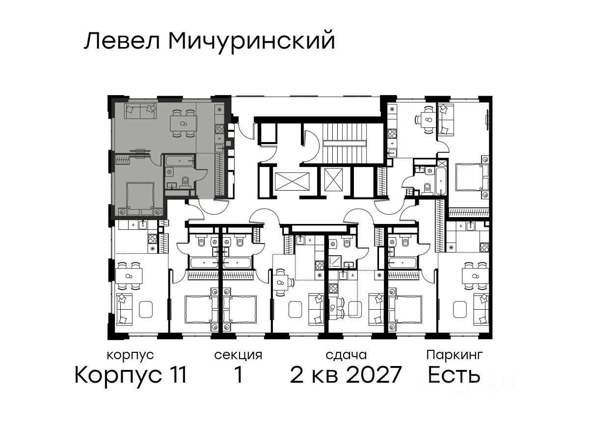 В жилом квартале, расположенном на границе с природным заказником "Долина реки Очаковки", продаётся 2-комнатная квартира площадью 41.20 кв.м с отделкой white box. Квартира расположена на 24 этаже 24-этажного корпуса 11 в жилом комплексе бизнес-класса Левел Мичуринский (компания Level Group/Левел групп).