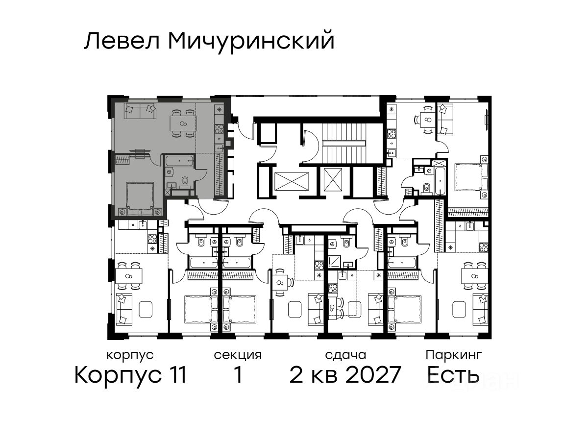В жилом квартале, расположенном на границе с природным заказником "Долина реки Очаковки", продаётся 2-комнатная квартира площадью 40.70 кв.м с отделкой white box. Квартира расположена на 12 этаже 24-этажного корпуса 11 в жилом комплексе бизнес-класса Левел Мичуринский (компания Level Group/Левел групп).