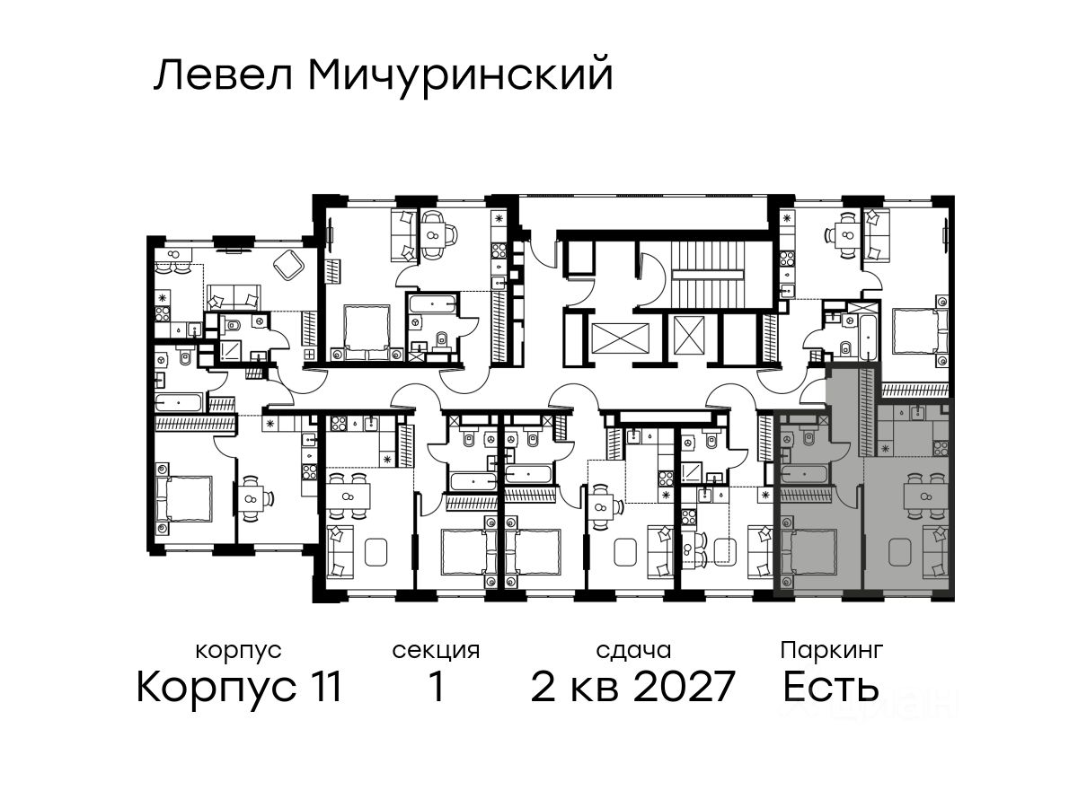 В жилом квартале, расположенном на границе с природным заказником "Долина реки Очаковки", продаётся 2-комнатная квартира площадью 42.60 кв.м с отделкой white box. Квартира расположена на 3 этаже 24-этажного корпуса 11 в жилом комплексе бизнес-класса Левел Мичуринский (компания Level Group/Левел групп).