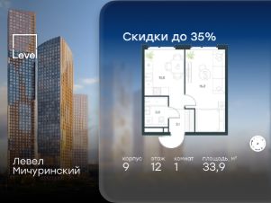 В жилом квартале, расположенном на границе с природным заказником "Долина реки Очаковки", продаётся 1-комнатная квартира площадью 33.90 кв.м без отделки. Квартира расположена на 12 этаже 12-этажного корпуса 9 в жилом комплексе бизнес-класса Левел Мичуринский (компания Level Group/Левел групп).