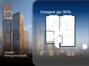 В жилом квартале, расположенном на границе с природным заказником "Долина реки Очаковки", продаётся 1-комнатная квартира площадью 38.80 кв.м без отделки. Квартира расположена на 10 этаже 12-этажного корпуса 9 в жилом комплексе бизнес-класса Левел Мичуринский (компания Level Group/Левел групп).