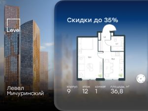 В жилом квартале, расположенном на границе с природным заказником "Долина реки Очаковки", продаётся 1-комнатная квартира площадью 36.80 кв.м без отделки. Квартира расположена на 12 этаже 12-этажного корпуса 9 в жилом комплексе бизнес-класса Левел Мичуринский (компания Level Group/Левел групп).