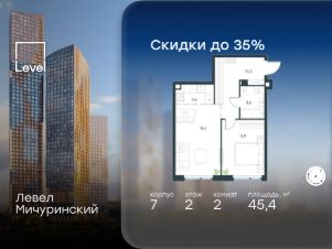 В жилом квартале, расположенном на границе с природным заказником "Долина реки Очаковки", продаётся 2-комнатная квартира площадью 45.40 кв.м без отделки. Квартира расположена на 2 этаже 24-этажного корпуса 7 в жилом комплексе бизнес-класса Левел Мичуринский (компания Level Group/Левел групп).