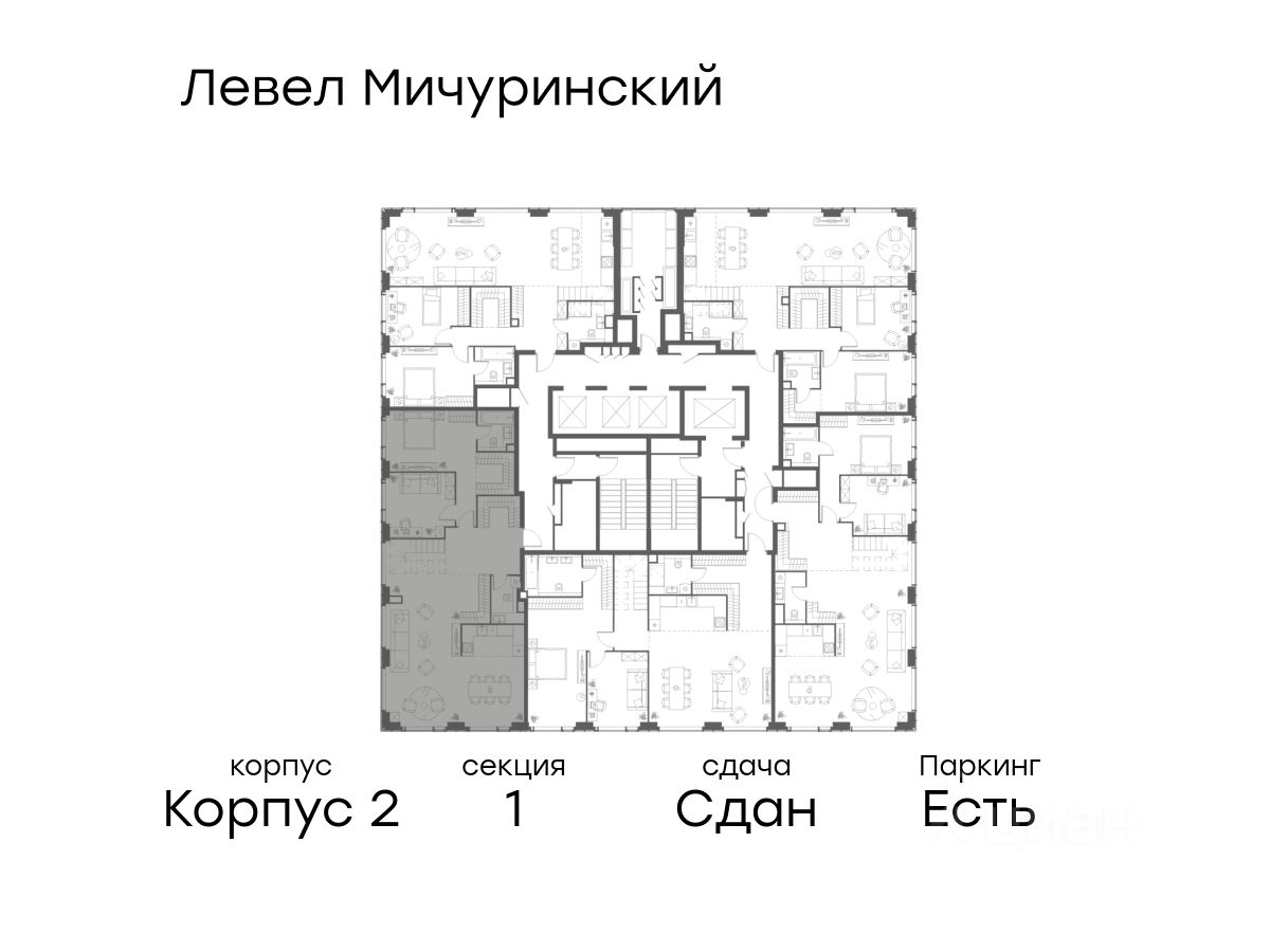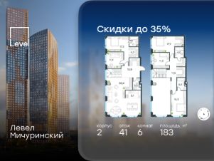 В жилом квартале, расположенном на границе с природным заказником "Долина реки Очаковки", продаётся многокомнатная квартира площадью 183.00 кв.м без отделки. Квартира расположена на 41 этаже 42-этажного корпуса 2 в жилом комплексе бизнес-класса Левел Мичуринский (компания Level Group/Левел групп).