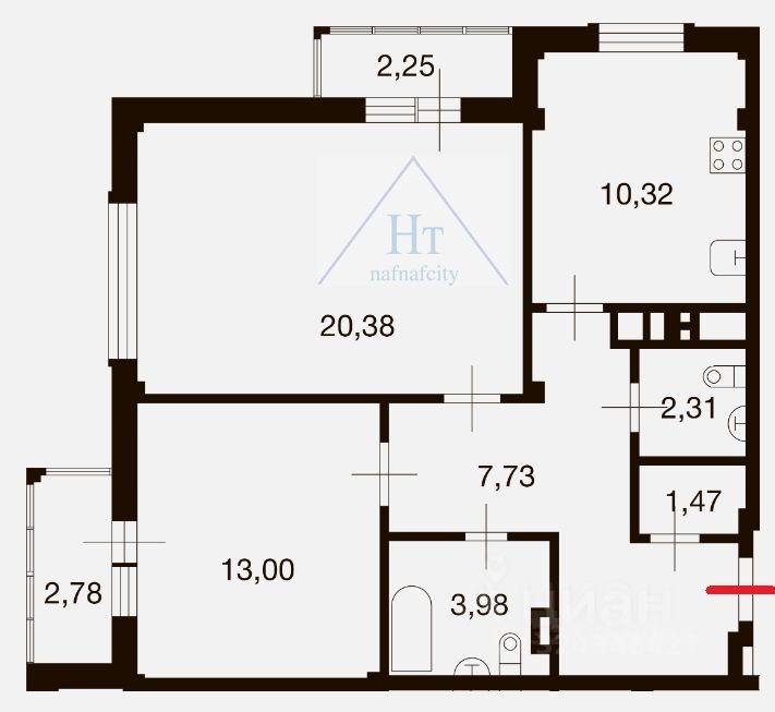 КУХНЯ: = 10,3м2, - настенный газовый котел,
