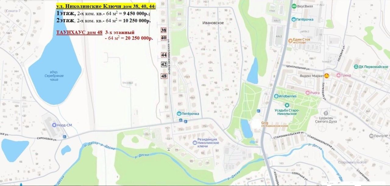 Общая площадь: 64,0м2, Жилая площадь: 33,3м2, Высота потолков -3,0м.