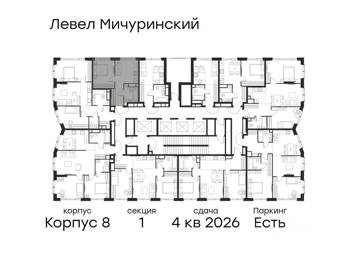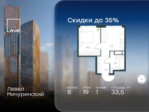 В жилом квартале, расположенном на границе с природным заказником "Долина реки Очаковки", продаётся 1-комнатная квартира площадью 33.50 кв.м без отделки. Квартира расположена на 19 этаже 48-этажного корпуса 8 в жилом комплексе бизнес-класса Левел Мичуринский (компания Level Group/Левел групп).