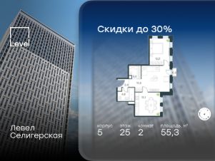 В жилом квартале, расположенном в южной части района Западное Дегунино, продаётся 2-комнатная квартира площадью 55.30 кв.м без отделки. Квартира расположена на 25 этаже 40-этажного корпуса 5 в жилом комплексе комфорт-класса Левел Селигерская (компания Level Group/Левел групп).