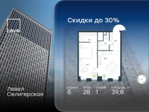 В жилом квартале, расположенном в южной части района Западное Дегунино, продаётся 1-комнатная квартира площадью 39.80 кв.м без отделки. Квартира расположена на 28 этаже 40-этажного корпуса 5 в жилом комплексе комфорт-класса Левел Селигерская (компания Level Group/Левел групп).