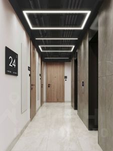- Стильные дизайнерские лобби с высокими потолками до 4,3 м. и окнами в пол, для питомцев предусмотрена лапомойка;