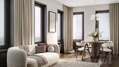 - Стильные дизайнерские лобби с высокими потолками до 4,3 м. и окнами в пол, для питомцев предусмотрена лапомойка;
