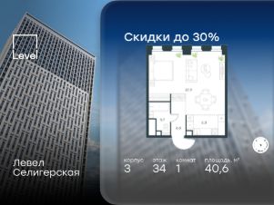 В жилом квартале, расположенном в южной части района Западное Дегунино, продаётся 1-комнатная квартира площадью 40.60 кв.м без отделки. Квартира расположена на 34 этаже 40-этажного корпуса 3 в жилом комплексе комфорт-класса Левел Селигерская (компания Level Group/Левел групп).