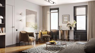 - Стильные дизайнерские лобби с высокими потолками до 4,3 м. и окнами в пол, для питомцев предусмотрена лапомойка;