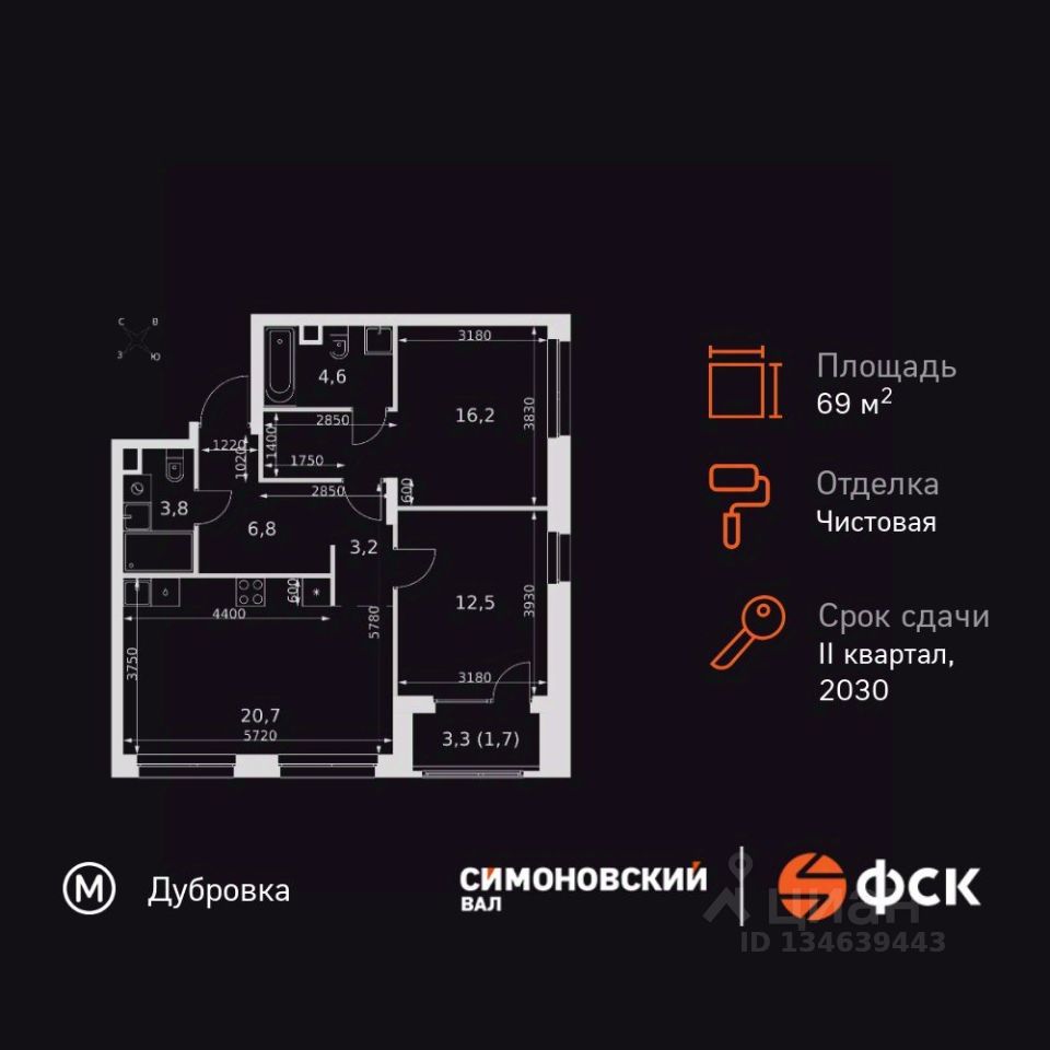 Продаётся 3-к квартира номер 123 общей площадью 69.5 кв.м. на 12-м этаже 27 этажного здания. Чистовая отделка. Цена с учётом скидки.